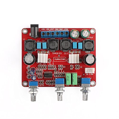 This amplifier board with 2*TPA3123 digital amplifier chip, one for left and right channel power amplifier, one for bridge driver subwoofer, Left and right channel output 20W*2, subwoofer output 40W, efficiency can reach above 90%, small size, efficient, high-power. can use laptop switching power supply or battery-powered devices, such as motorcycles, cars, electric cars and etc.