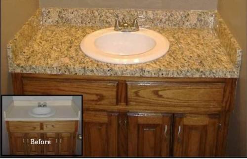 Granite Counter Top: Gold Granite Look Peel and Stick Venetian Gold Granite Counter. PET/PVC 10'L x 3' W .
