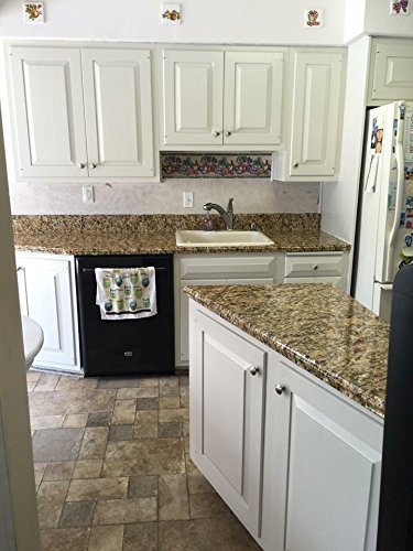 Easy peel and stick process goes over your old laminate, quartz, cultured marble, & ceramic tile countertops. All in one solution to cover your laminate countertops. The product is EZ to remove and will not leave a sticky residue. Great for apartments, leases, rental properties and for "commitment phobe's".As seen on TV Steve Harvey Show, Rachael Ray , HGTV, QVC, The Today Show, DIYNetwork and more. No sticky residue when removed. No Paint. Peel and stick removable solution for smooth surfaces.
