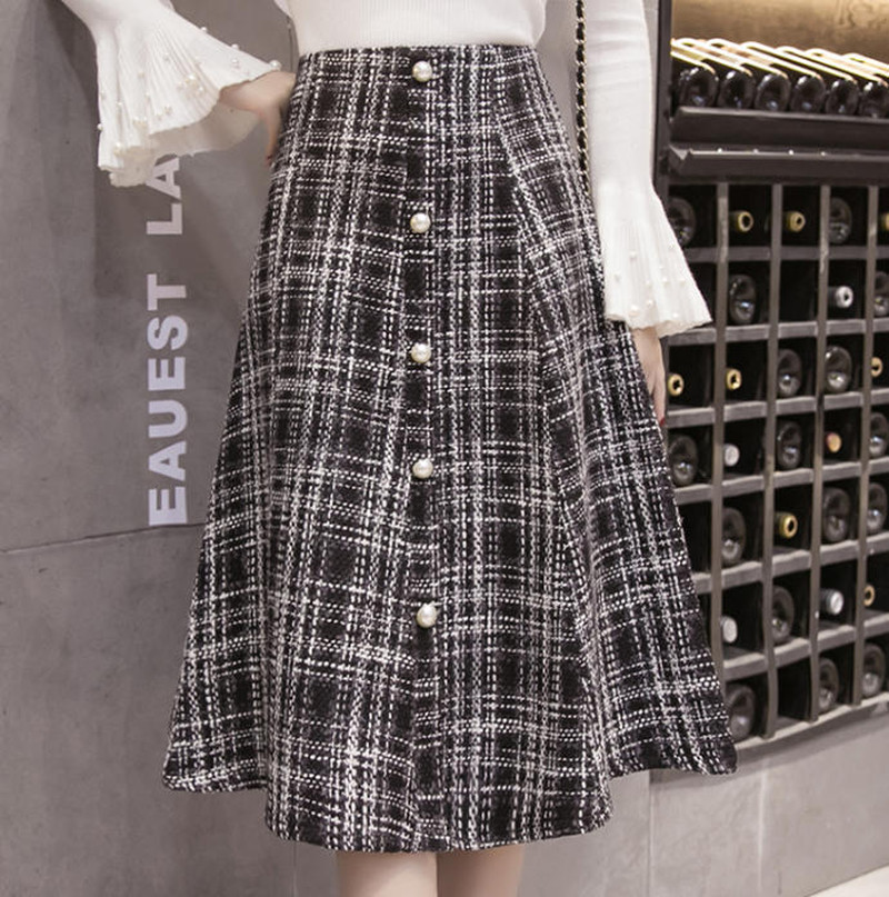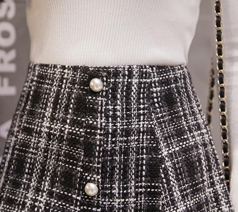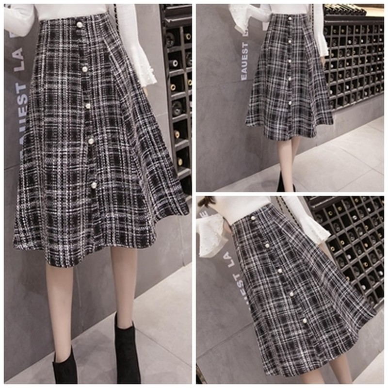 ♢ポイント♢ 上品な印象のチェック柄フレアスカートです。 パール調のボタンがアクセントに♪