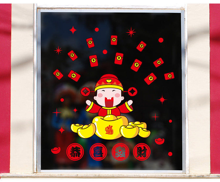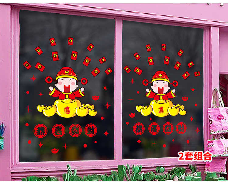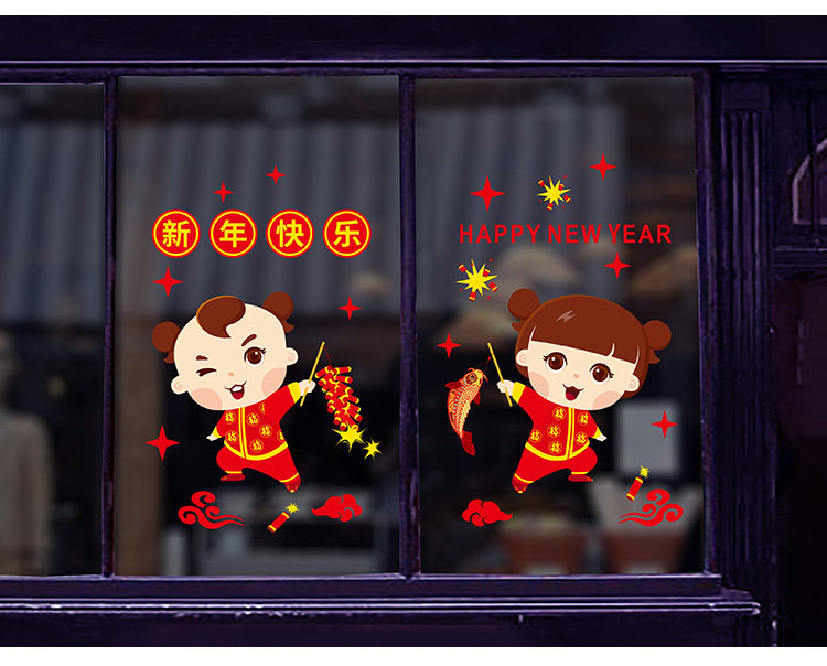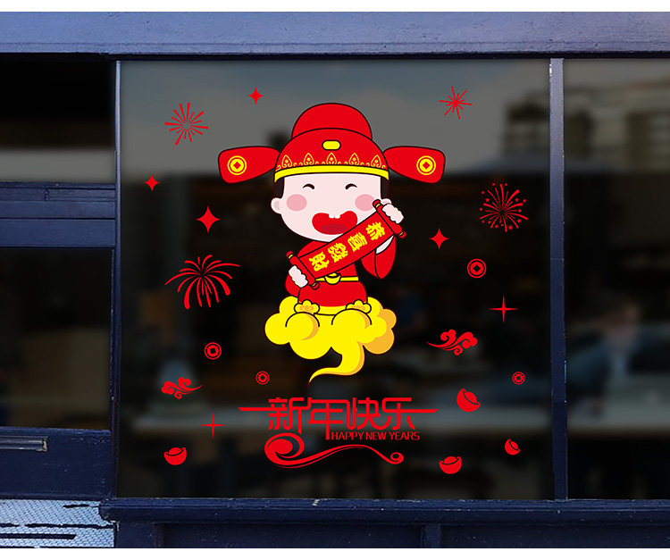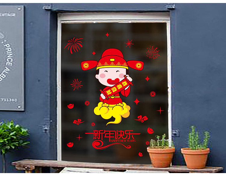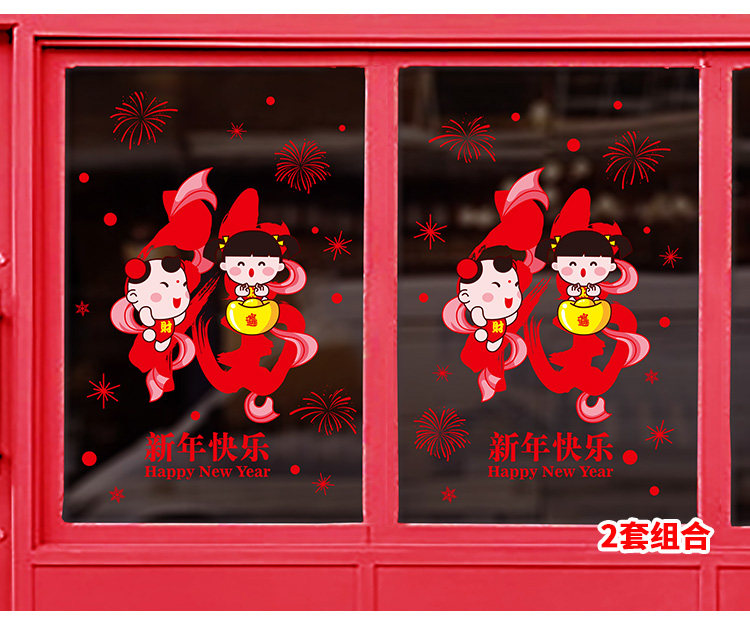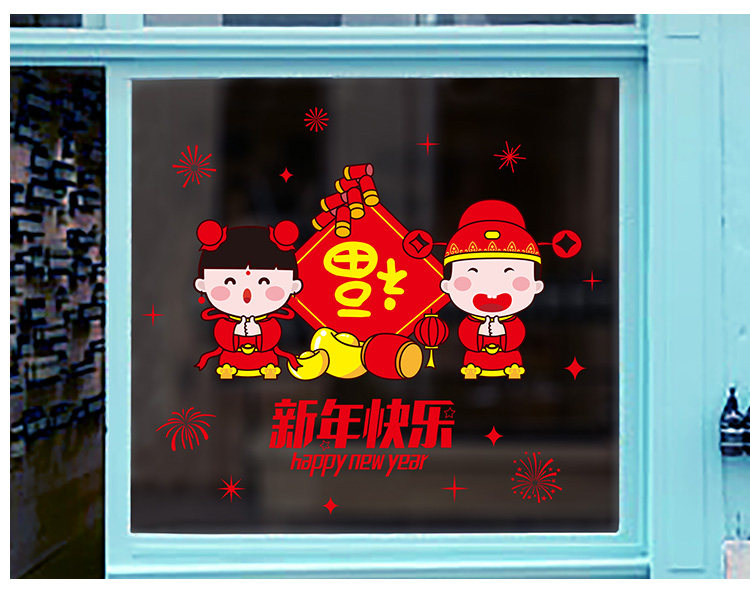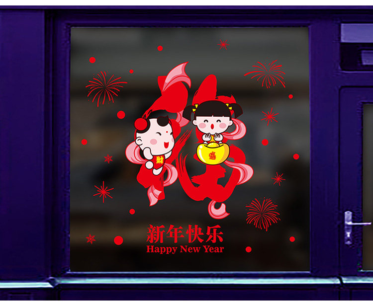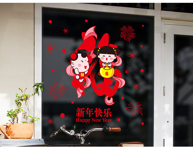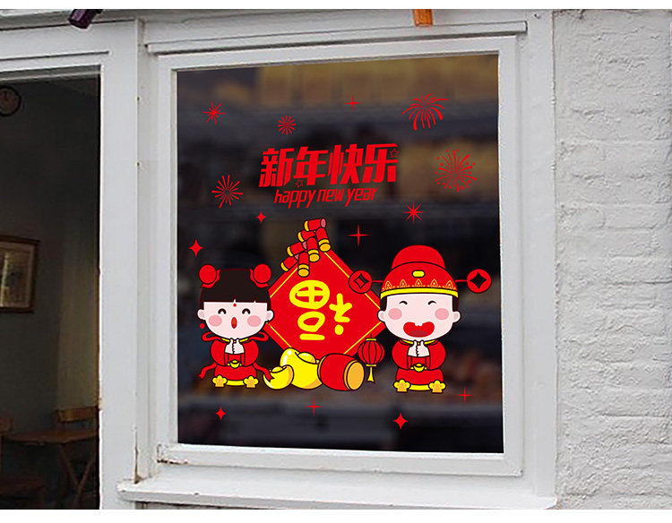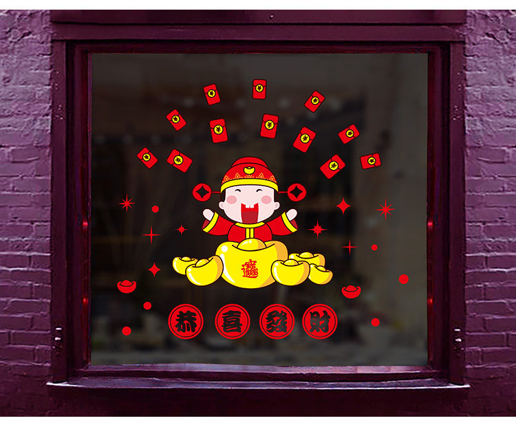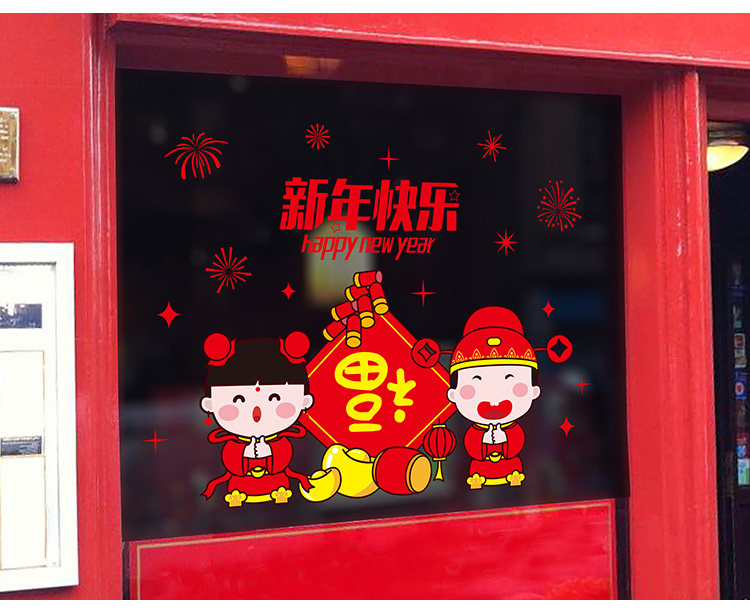 喜庆窗户贴花商场店铺橱窗贴画春节玻璃门贴纸新年装饰品过年墙贴