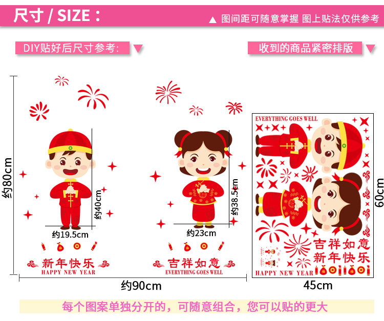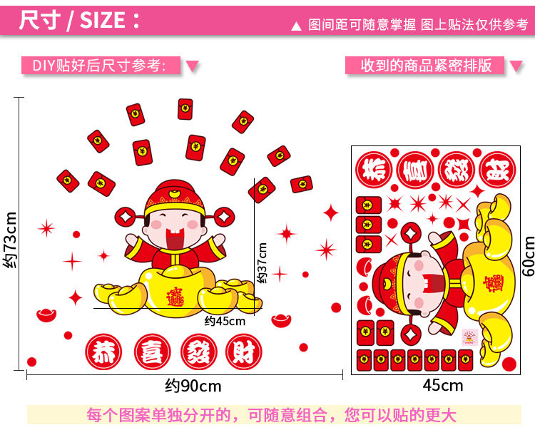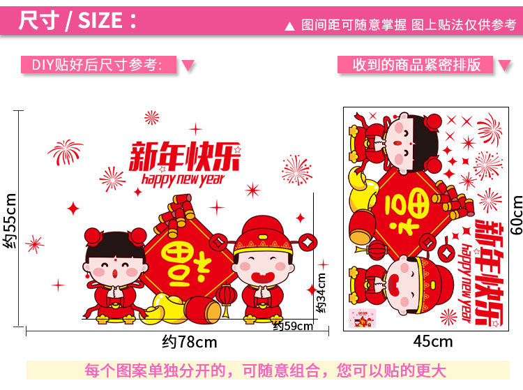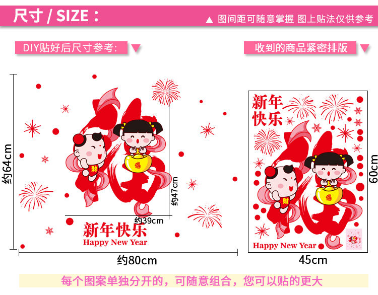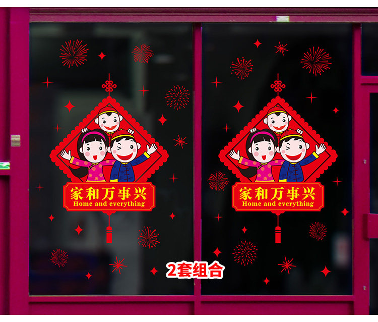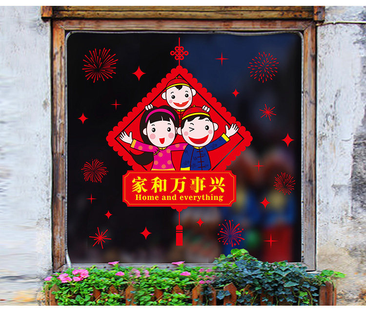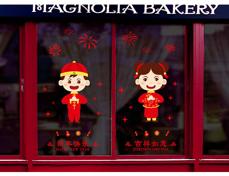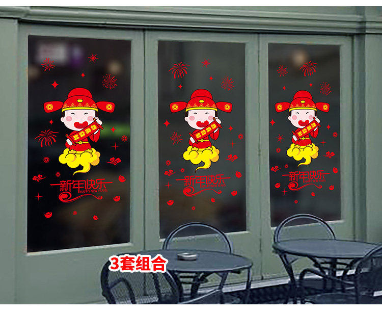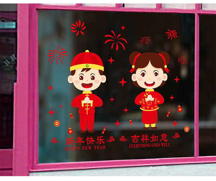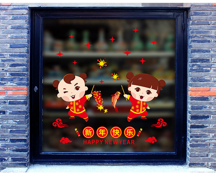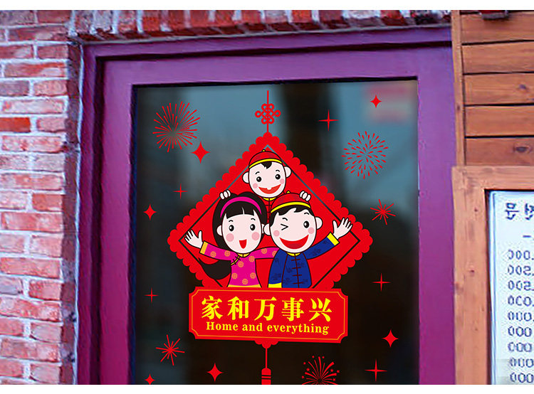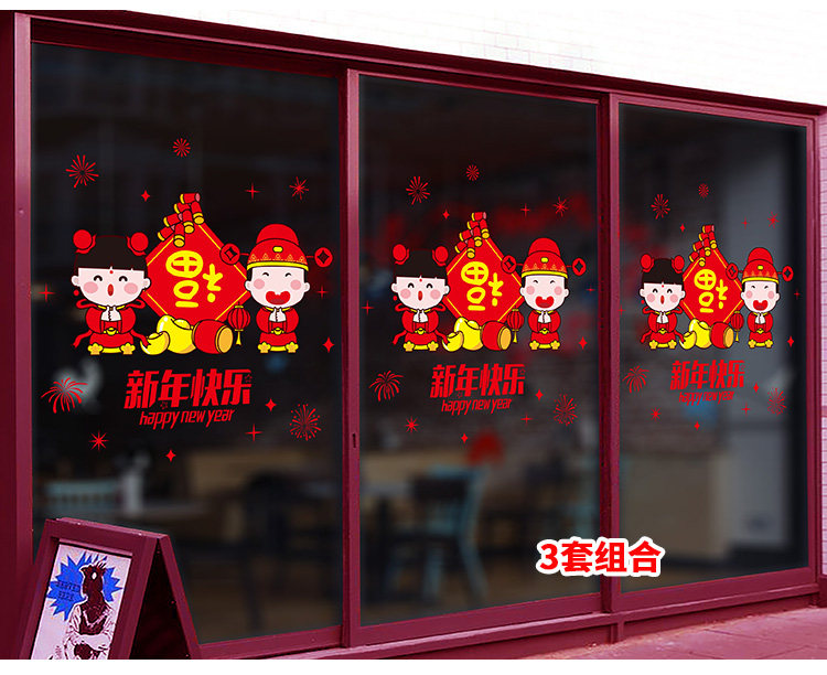 喜庆窗户贴花商场店铺橱窗贴画春节玻璃门贴纸新年装饰品过年墙贴