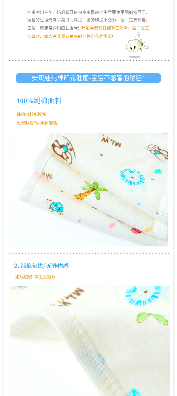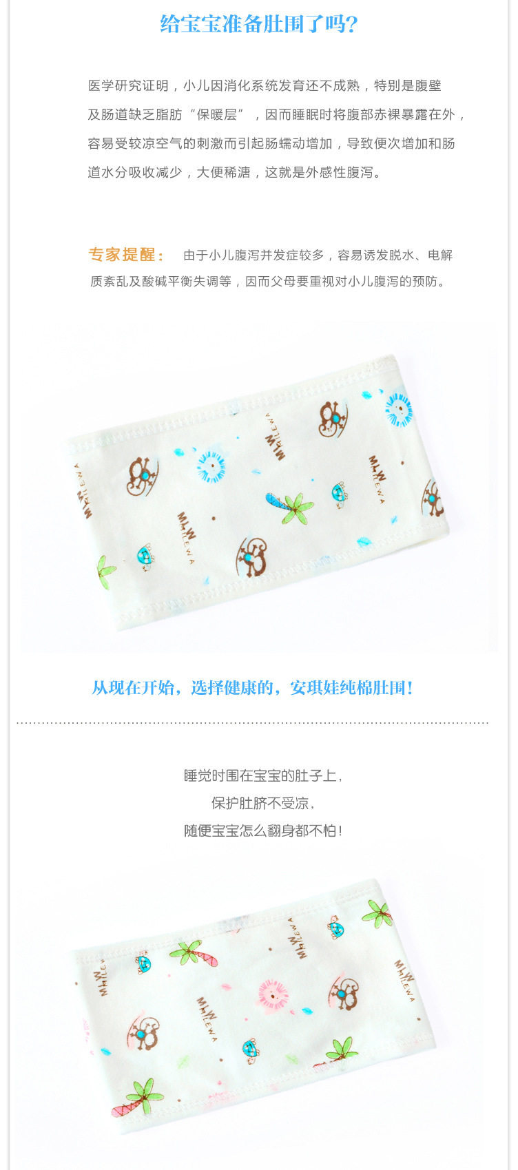 宝宝卡通护肚围/护脐带 儿童宝宝睡觉不着凉全棉透气