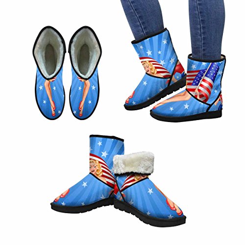 (InterestPrint)/Women's/Boots/DIRECT FROM USA/InterestPrint Women's Snow Boots Pin Up Blond Patriotic Woman With Us Flag On Blue Design Art P...