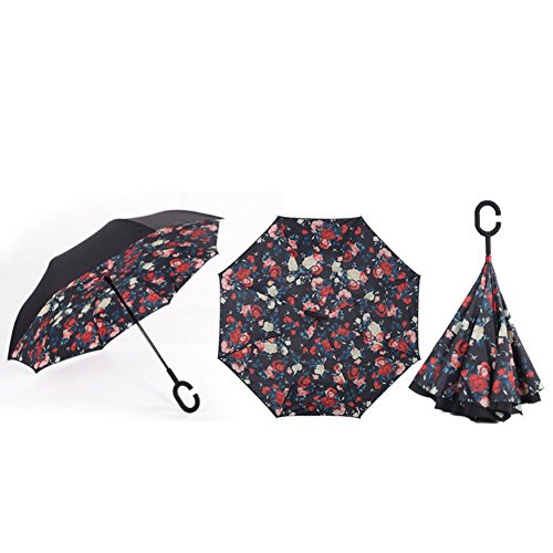 Studio : KAYI Publisher : KAYI Binding : Kitchen Product Description C-Handle Windproof Double Layer Inverted Folding Stylish Umbrella Description: The C-shape handle will leave your hands free for holding a baby or using a mobile or carrying things if needed, The convenient open button design make the inside out umbrella easy to operate. It can be standed up Double layer fabric that allows it to be wind proof Minimal dripping after closure,allowing the remaining rain water to fold inside and you can flip it over instead of letting it drip Easy to open and close in confine spaces unlike traditional umbrellas The best choice for yourself or your friends and family. Specification: 100% Brand new Type: C-shape Pattern Unbrella Umbrella Cloth Material: Inpact Cloth Umbrella Scaffold Material:Fiber C-Handle Material : Rubber Umbrella Ribs Number:8 ColorPattern: As pictures. Size: Length: approx. 87cm /34.25'(closed) Diameter: approx. 105cm/41.34' (opened) Package included: 1x Waterproof Umbrella Note: Please allow 1-3mm errors due to manual measurement.