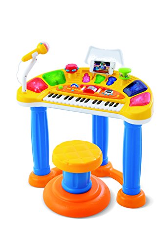 -. Feature : It can play symphony with 10 kinds of instruments including piano / ERGONOMIC DESIGNE: Features ergonomically designed stand and stool for child's safe. / HYGIENIC AND STURDY: Inclludes washable michrophone cover and strudy cradle for smartphoes and musice sheet. / Featuring 32 melodious music with flashing light / Size : 20.87x23.62inches, Stands are removeable