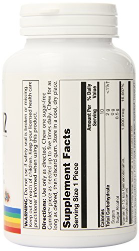 For a healthy and fun way to get essential nutritional support for energy and mental focus, try solaray's vitamin b12 gumlet 1000 mcg.