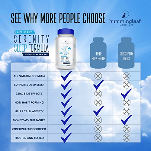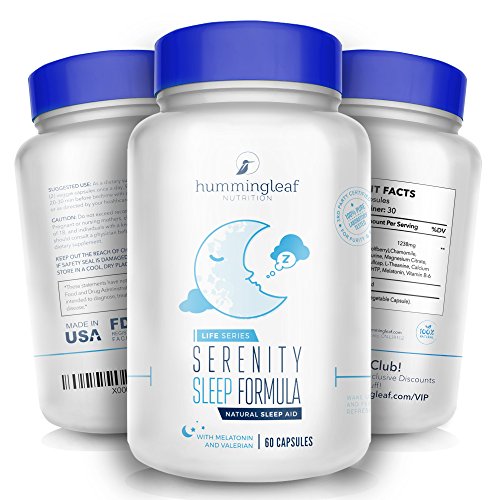 -. Binding : Health and Beauty -. Brand : Hummingleaf -. EAN : 0712392997386 -. Feature : ACHIEVE NATURAL SLEEP CYCLE - Serenity Sleep Formula is an easy yet effective relief to restless and sleepless nights. Just 2 capsules a day, and you will achieve a natural sleep cycle without risking yourself to the disadvantages of other chemically-based sleeping pills. / PROMOTES STRESS-FREE LIVING - A deep and sound sleep means a stress-free morning. With Serenity Sleep Formula, you will experience waking up feeling rejuvenated, guaranteed no grogginess. / NON-HABIT FORMING SLEEPING AID - This sleep formula is a non-habit forming sleep aid that works well at any time of the day when you need a restful moment. / ALL-NATURAL FORMULA - Serenity Sleep Pills are absolutely pro-Vegan, Gluten Free, made with all natural ingredients. / JOIN THOUSANDS OF HAPPY CUSTOMERS - When you order from Hummingleaf, you're protected by our industry leading, no-risk, no questions asked, 365-day money back guarantee and top-rated customer service. The ONLY Sleep Formula on Amazon committed to your success! Hummingleaf is the #1 choice in nutritional products people trust. -. IsAdultProduct : 0 -. Label : Hummingleaf -. Manufacturer : Hummingleaf -. ProductGroup : Health and Beauty -. ProductTypeName : HEALTH_PERSONAL_CARE -. Publisher : Hummingleaf -. Studio : Hummingleaf -. Title : SERENITY Sleep Aid with Melatonin & Valerian by Hummingleaf 60 Capsules - All Natural Extra Strength Sleeping Pills -. UPC : 712392997386