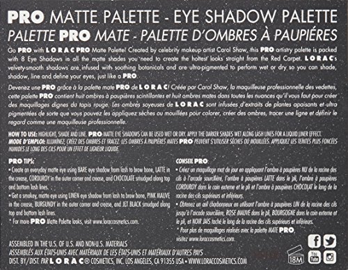 Go Pro with LORAC Pro Matte Palette. Created by celebrity makeup artist Carol Shaw, this Pro artistry palette is packed with 8 Eye Shadows in all the matte shades you need to create the hottest looks straight from the Red Carpet. LORAC’S velvety-smooth shadows are infused with soothing botanicals and are ultra-pigmented to perform wet or dry so you can shade, shadow, line and define your eyes, just like a Pro.