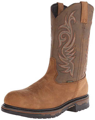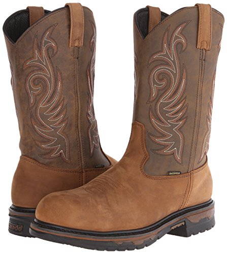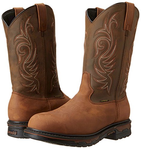 Studio : Laredo Publisher : Laredo Binding : Apparel Product Description Laredo puts working feet into tough, authentic western styling. Waterproof for extra durability, these Laredo cowboy work boots are right at home in a truck, a loading dock, a ranch, or a construction site. They can handle tough jobs around home, too. That's why Laredo boots are some of our best sellers among hard-working men. This pull-on waterproof work boot features a leather foot under a fancy stitched, leather-look 11" shaft. Manmade lining. Soft broad round toe. EW, Extra Wide, equals EE width. 0