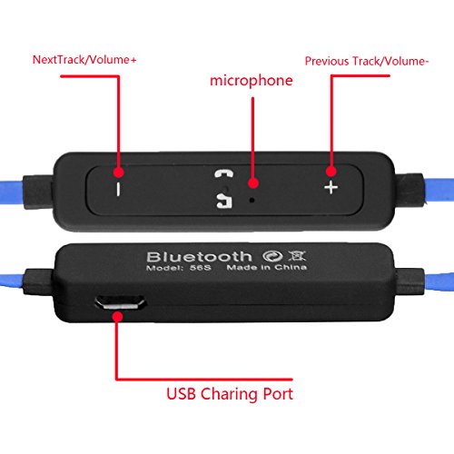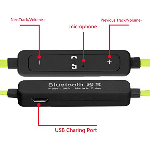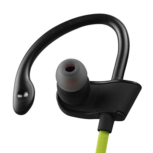 -. Feature : STATE OF THE ART EARPHONES DESIGN.Best workout sweatproof Bluetooth headphones. Great for Running, Jogging, Hiking, Biking, Gym etc. Stay in Ear Tech with Comfortable Ear Hook. / Bluetooth V4.1+EDR for stereo sound and superb bass sound. Clear high & low volume. Best Wireless earbuds sound.Bulit-in mic with voice notification of incoming calls / Powerful bluetooth signal with up to 33feet operation distance. / SUPER SOFT SECURITY HOOKS: Ergonomic and flexible in-ear design, super soft silicone over-ear hooks guarantees a firm, secure fit without hurting your ear, enables comfortable wearing experience without falling out. / The earphones battery capacity are 70 mAH,that enables over 6 hours playtime