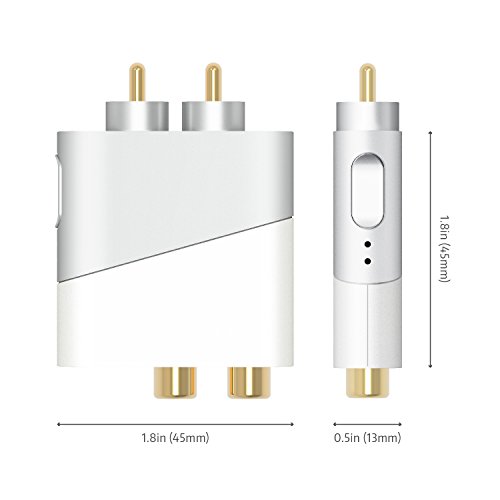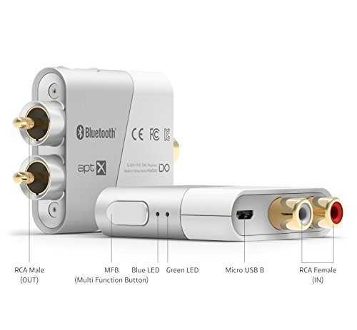 -. Feature : Bluetooth Music Transmitter: You can transmit highest quality audio wirelessly form your audio device to your bluetooth speaker or head set. / Elegant Design:Machined Aluminium Body, High quality anodizing, Premium Finish, Small size / External High Performance DAC:Burr-Brown PCM1803 ADC 24bit,SNR:103dB,THD:-95dB,44.1KHz / Direct Connect:RCA Plugs at standard spacing allow convenient connection directly to your audio device. / Audio Pass through: RCA Female Audio Input + Bluetooth Audio Transmitter, can transmit the music of wired and wireless without control.