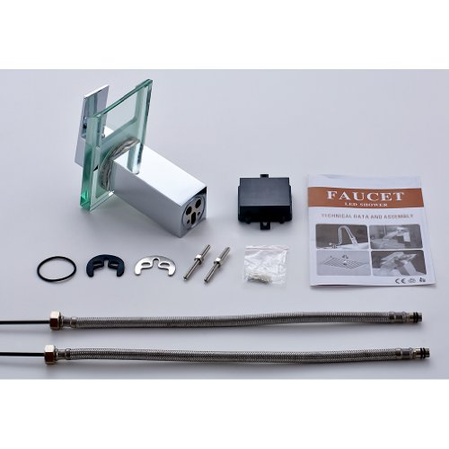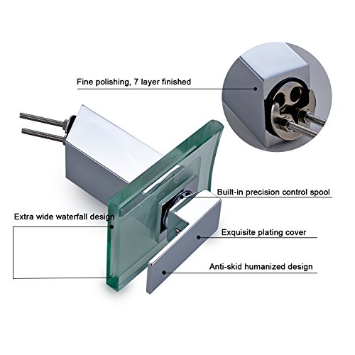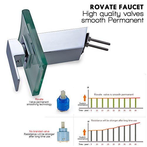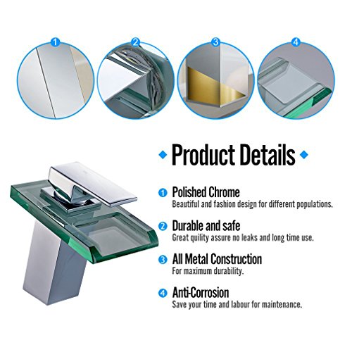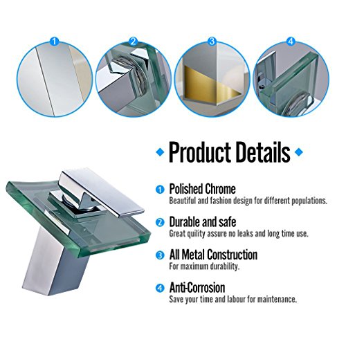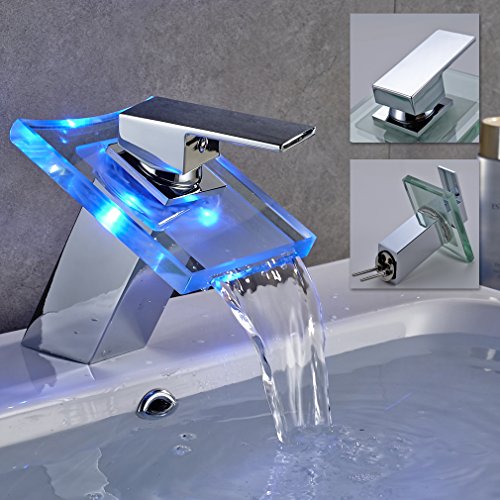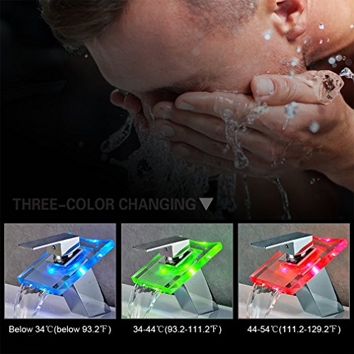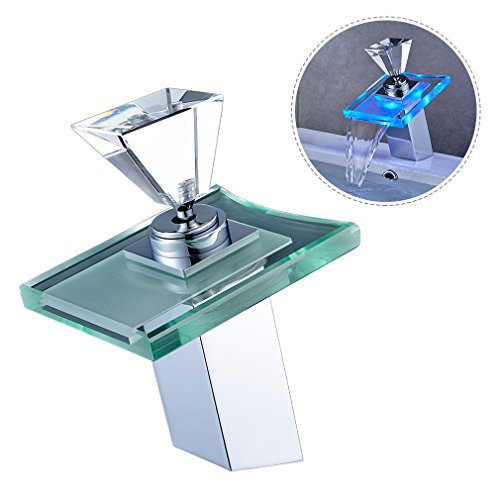 -. Title : ROVATE Bathroom Sink LED Glass Faucet, 3 Colors Changing Light Waterfall Spout Single Handle Single Hole Mixe,Mount on Sink, Polished Chrome