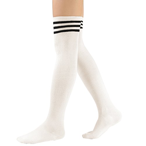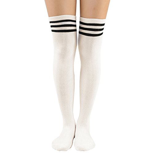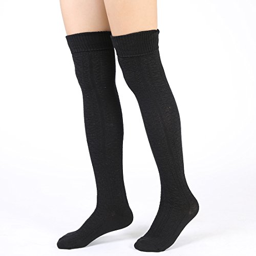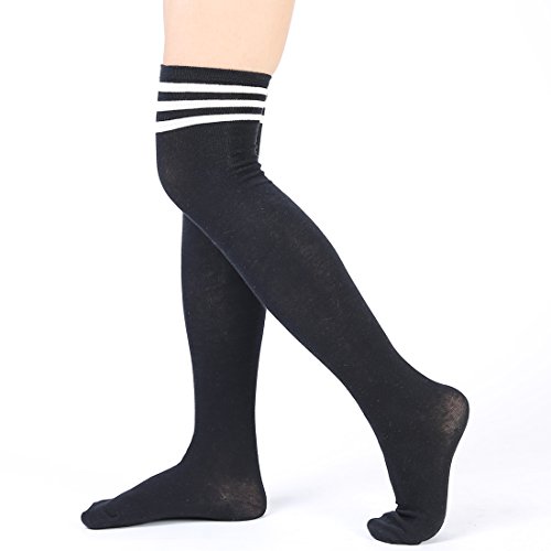 -. Feature : Material:80% Cotton, 17% Polyester, 3% Spandex / One Size Fits Most(sock size 6-11, length: approximately 2.3'.) / Very comfortable stretch fabric with good elastic recovery .These thigh high socks are suitable for your favorite skirts or shorts. / Vintage design and Simple color,they are never go out of style and easy to dress.It makes you look cute,lively and charming. / Please wash them by hand in cool water and mild detergent. Lay flat to dry. Don't bleach, don't tumble dry and no ironing!