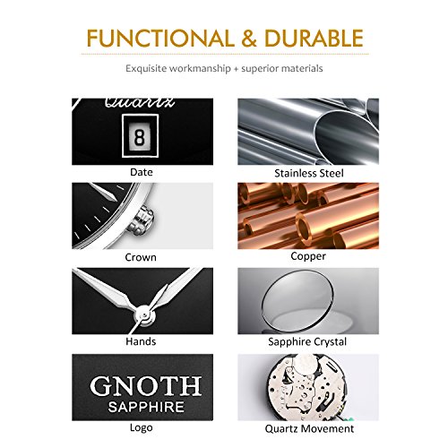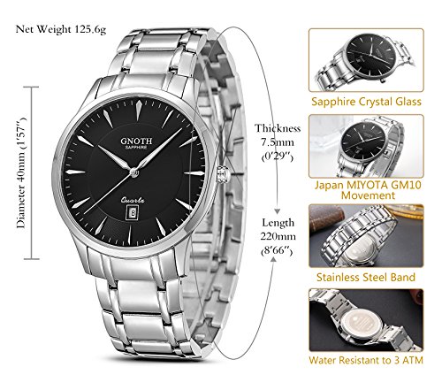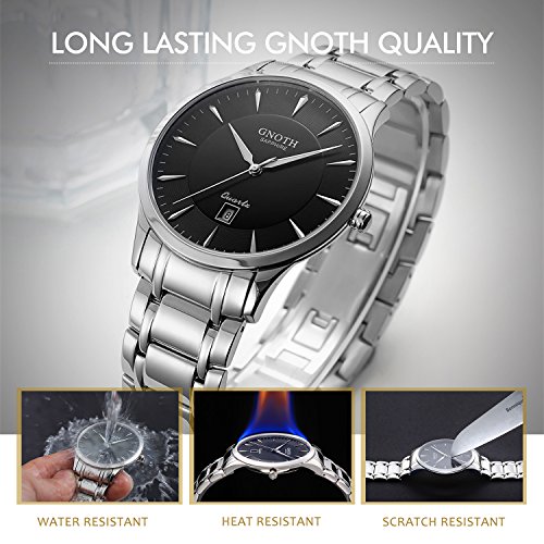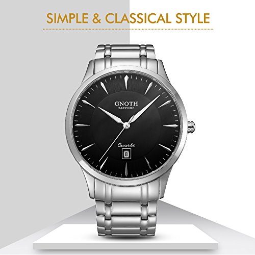 (가오 노) GNOTH 손목시계 실버 쿼츠 워치 아날로그 표시 30m방수 캘린더 스테인레스 스틸 맨즈[병행수입품]