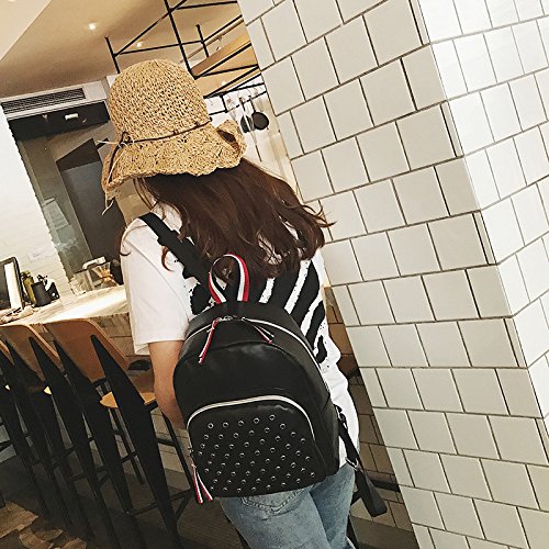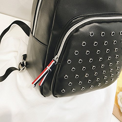 Studio : YIUXB Publisher : YIUXB Binding : Misc. Product Description Style: Ladies backpack Fabric texture: PU Lining material: Polyester Bag shape: Vertical square Bags trendy style: Small square bag Open cover way: Zipper Popular elements: Rivet Package Internal structure: Zipper Dark bag Strap root number: double root Bags size: Medium Pattern: Solid color Style: Korean version Processing methods: soft surface Hardness: 0