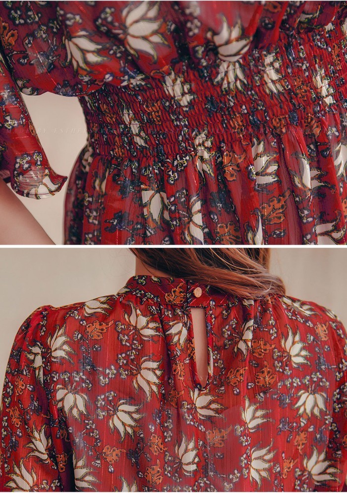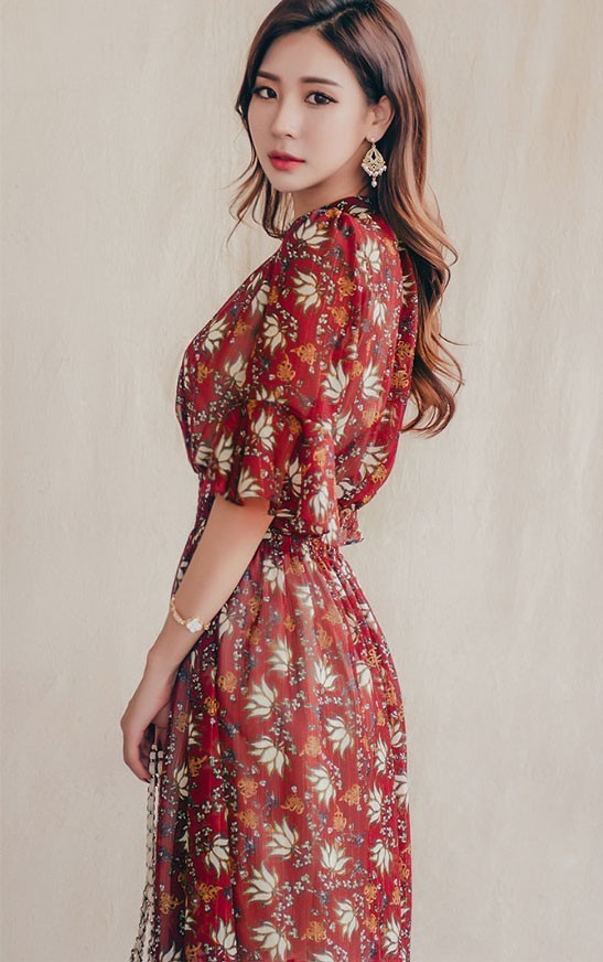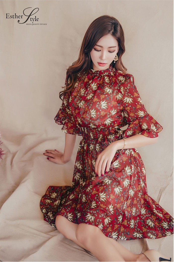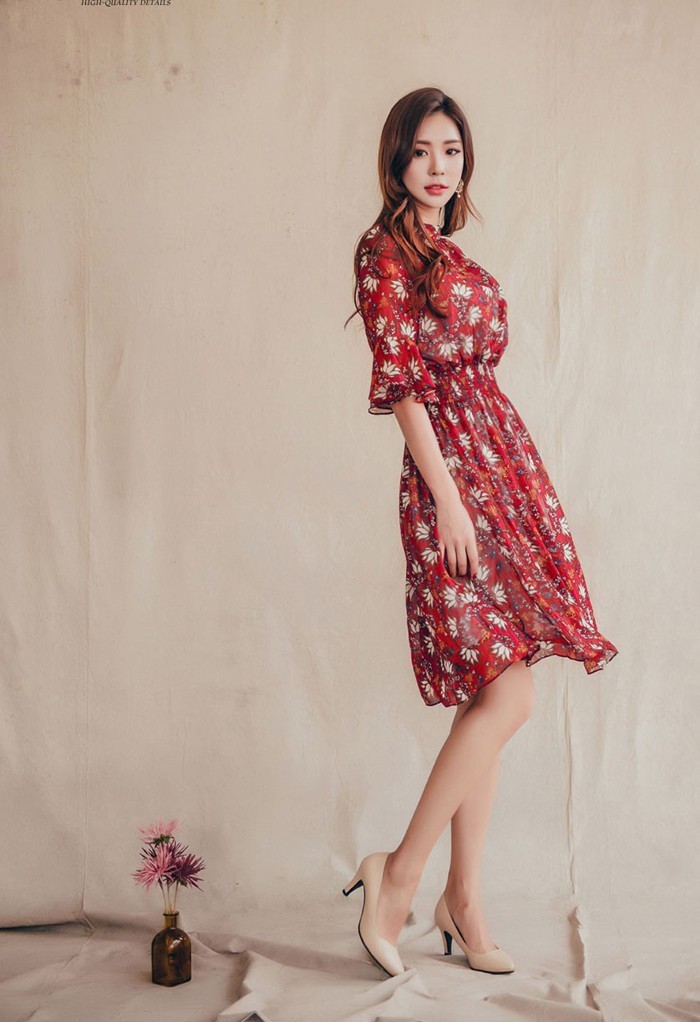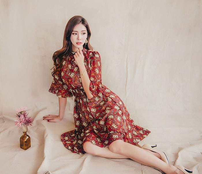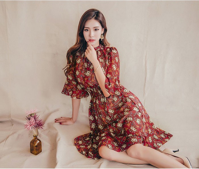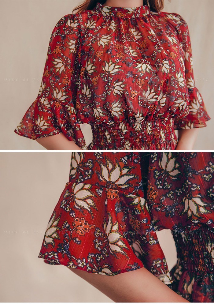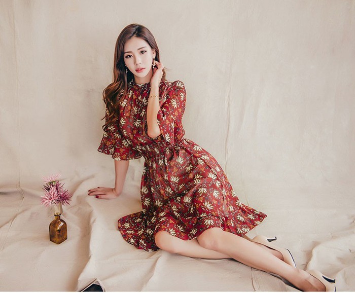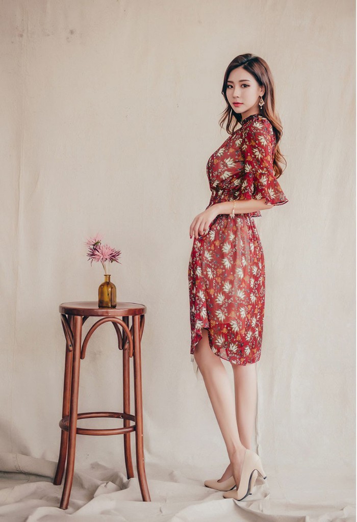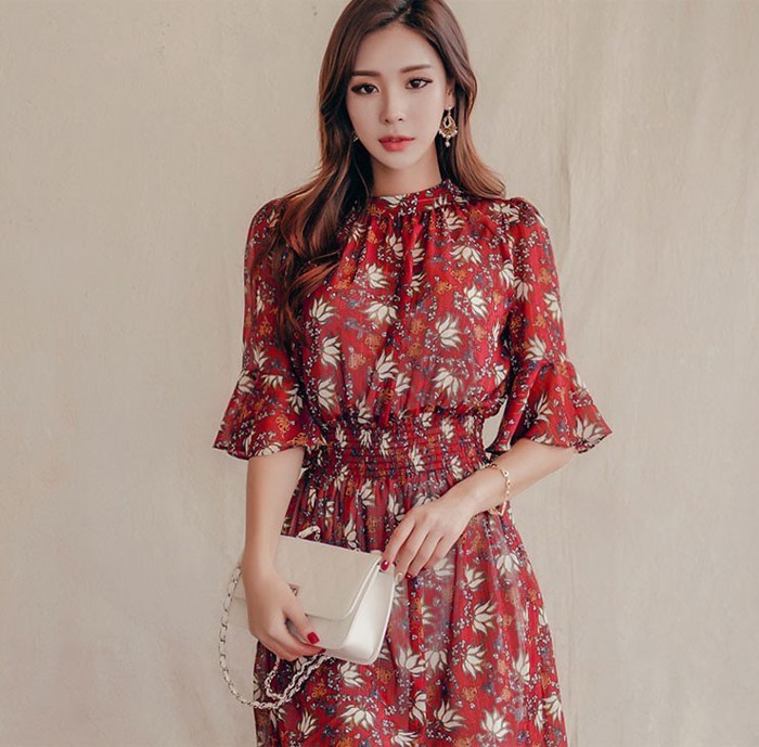 商品名:ワンピース 膝丈 柄 5分袖