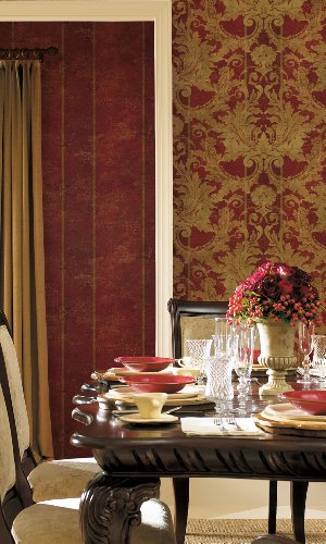 -. Title : York Wallcoverings GL4724 Brandywine Aida Damask Stripe Wallpaper, Antique Gold/Pale Gray