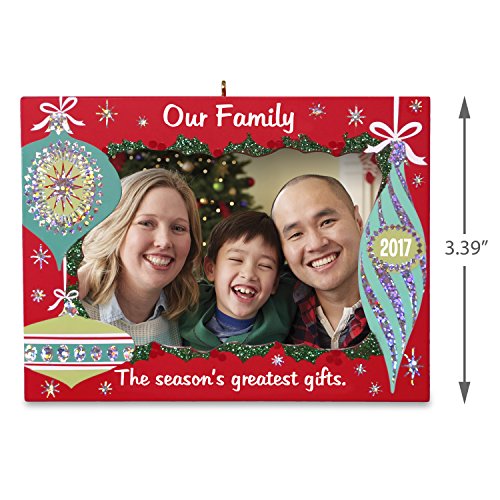Each piece includes one 2017 Our Family Greatest Gifts Picture Frame Dated Christmas Ornament in a gift-ready box.