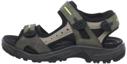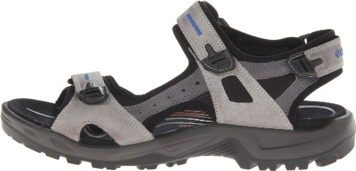 Open-toe sport sandal featuring stretch underlay and three adjustable hook-and-loop straps