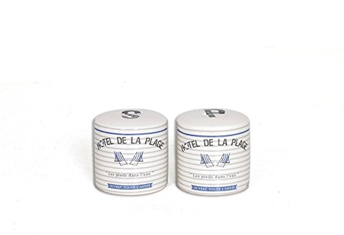French Inspired Ceramic Hotel De La Hotel Plage Beach Salt & Pepper Shaker Set