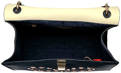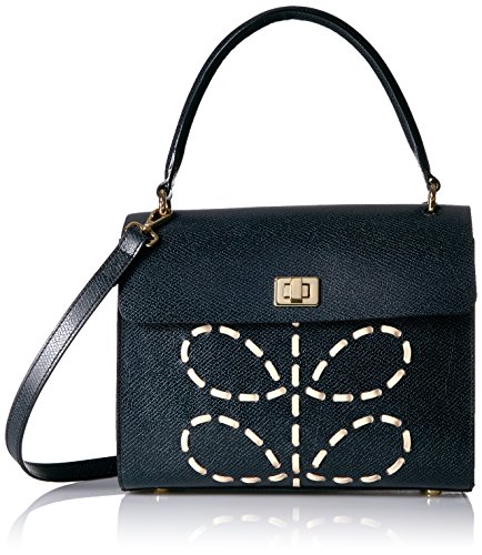 Studio : Orla Kiely Publisher : Orla Kiely Binding : Apparel Product Description Lace stem' textured leather structured cicely bag with hand laced stem detail on the front. Bag has flap closure, with metal turn lock closure. Suede side panels. Detachable handle, detachable shoulder strap. Leather card pocket with flap and popper closure. Gold colored hardware. Inside details include navy stem jacquard lining, elastic key chain, one pocket with zip closure and two slip pockets. 0