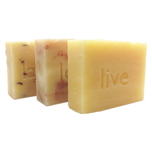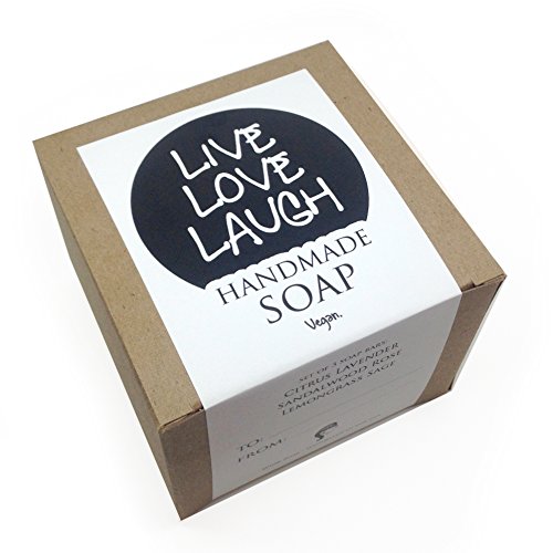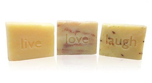 The perfect inspirational gift for anyone! Three 5.5 oz. soaps hand stamped with Live, Love and Laugh, wrapped and ready to give.