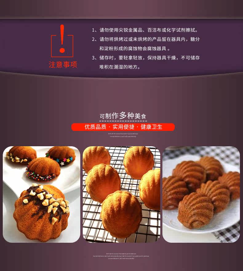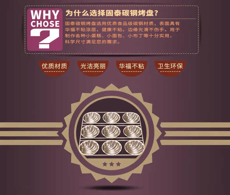 材质:食品级碳钢材质、表面华福不粘涂层