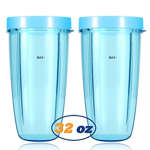 Replacement Blender Cups for NutriBullet Brand Accessories 600w 900w (32oz, Light Blue Lip Rings)