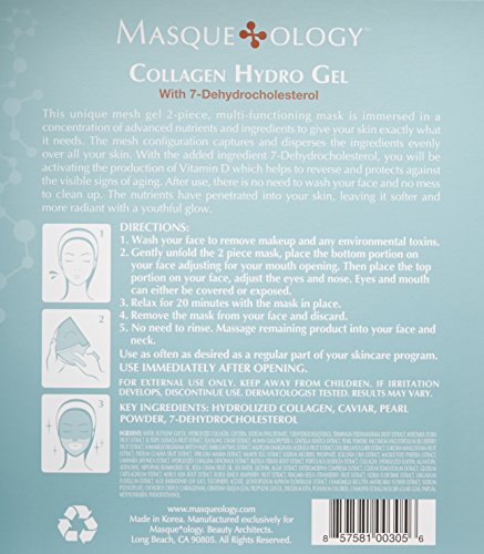 A synthetic mesh 2-piece single use facial mask saturated with advanced multi-functioning ingredients creates a gel like texture that contours to your face leaving it softer and hydrated while refining fine lines and wrinkles. Convenient. Today’s lifestyle dictates the need for a beauty regimen that is convenient. Any time, any location, masqueology will fit into just 20 minutes of your day. Original. Masqueology sets itself apart from other facial masks with its innovative design using special woven materials that create two distinct benefits for its user. The unique design also increases the penetration of the advanced formula ingredients into the skin delivering the desired visible results. Relaxing. Masqueology creates the sensation of the spa experience. Effective. With masqueology, visible results rivaling those of a spa treatment are achieved while still being far more affordable.