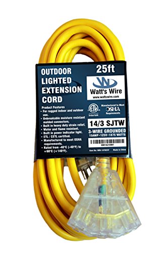 Watt's Wire's Grounded 14 Gauge (14/3) 25' Multi Outlet Lighted Extension Cords are the perfect cord for all around use. Our cords are designed around the contractor, and perfect for the hobbyist.