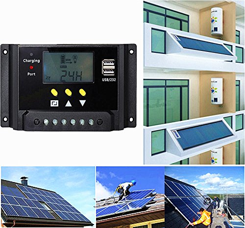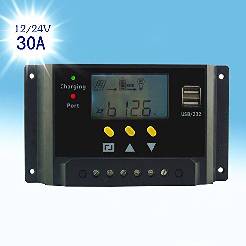 Hompie LCD Solar Charge Controller Intelligent Solar Panel Regulator Adapter with 30A 12V/24V 360W/720W PWM for Solar Power Panel Energy System, Street Lighting System and Environment Monitor etc