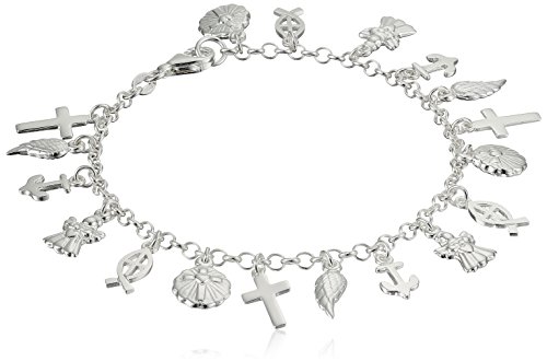 -. Title : Sterling Silver Faith Charm Bracelet, 7.5"