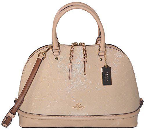 -. Brand : -. Color : Platinum -. Department : womens -. EAN : 0889532645213 -. Feature : Platinum Sierra dome satchel shoulder bag / 4.5" Drop Double Handles with Removable Crossbody Strap / Measures : 13" (L) x 9.5" (H) x 4.5" (D) / Zip Around Closure with Exterior Slip Pocket / Interior : One Zip Pocket & 2 Slip Pockets -. ProductGroup : Shoes -. ProductTypeName : HANDBAG -. Title : Sierra Dome Satchel in Signature Debossed Patent Leather F55449 Platinum -. UPC : 889532645213