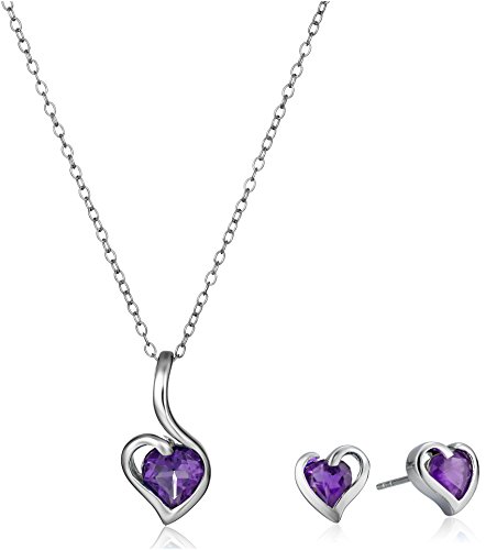 -. Feature : Sterling silver jewelry set featuring stud earrings and pendant necklace / Stud earrings feature faceted gemstone nestled in heart-shape frames / Pendant necklace features gemstone centerpiece in heart-shape frame suspended from cable chain / Necklace: 18" L / Pendant: .78" L x .38" W / Earring: .32" L x .32" W / Imported