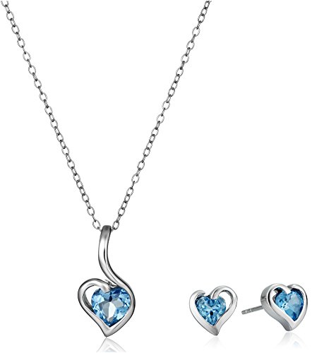 -. Title : Sterling Silver Gemstone Heart Pendant Necklace and Earrings Jewelry Set