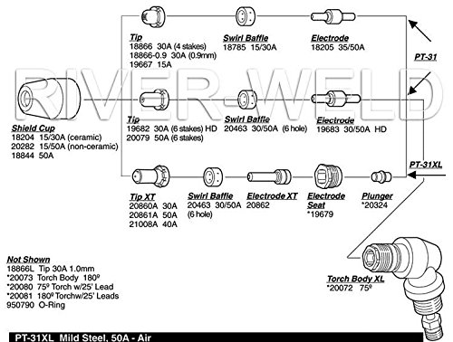 PT-31 LG-40 Plasma Electrode Tip Nozzle Extended Plasma Cutting Consumables Accessory Fit CUT50D CUT-50 CUT-40 CUT40D CT-312 100pcs