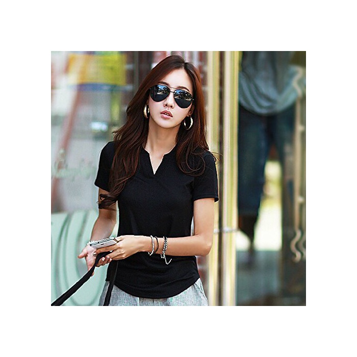 셔츠 폴로 셔츠 반소매 블라우스 레이디스 금부착 컷소우 톱스