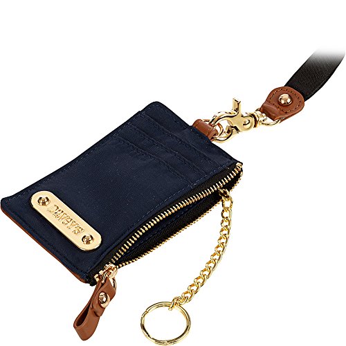 -. Feature : Zipper closure / 22" clip-removable woven twill lanyard / Lightweight, water resistant nylon with smooth leather trim and gold-tone hardware / Davey's plate on front / Exterior features 3 card slots at front and 1 card slot with clear ID window at rear