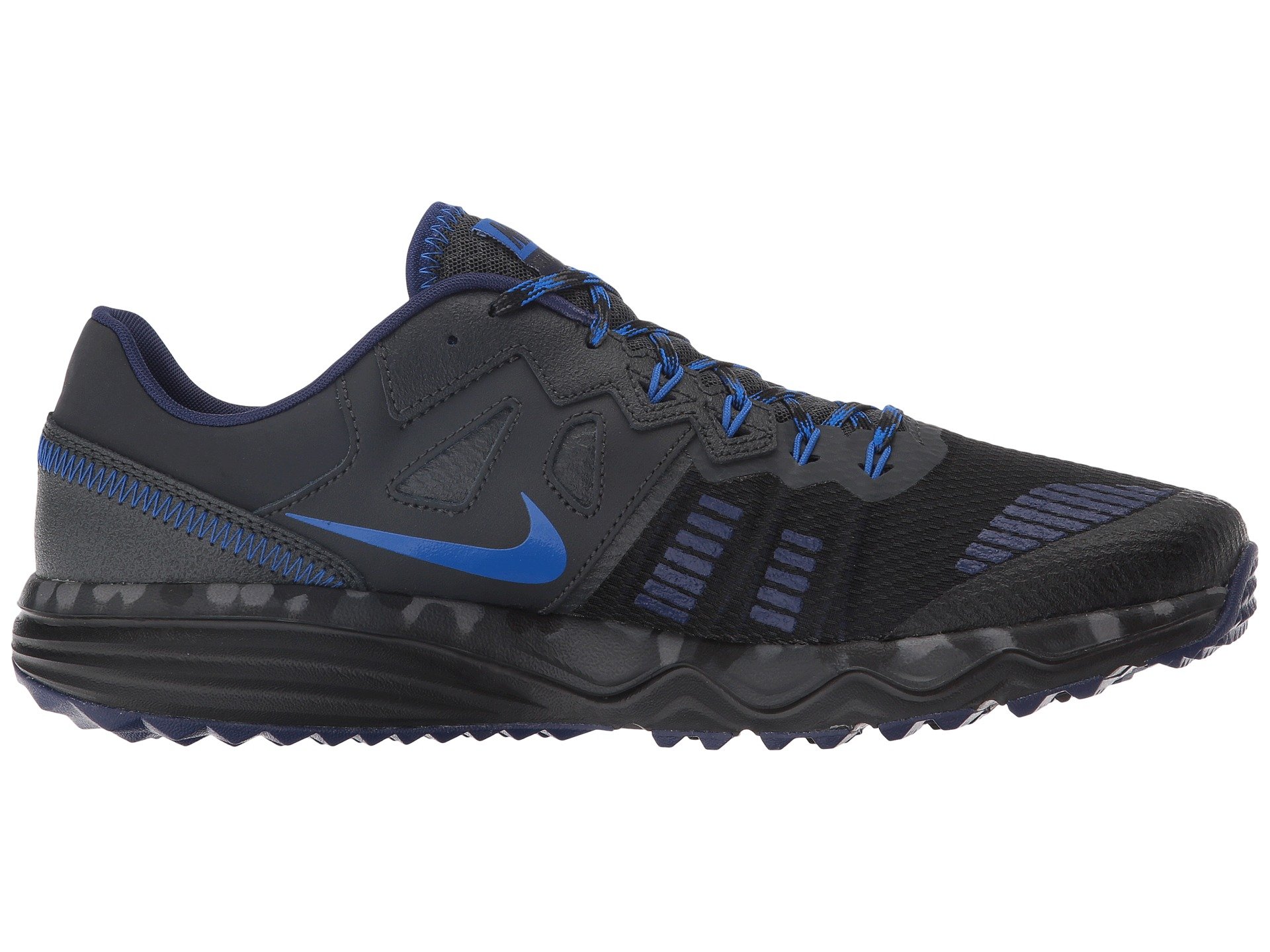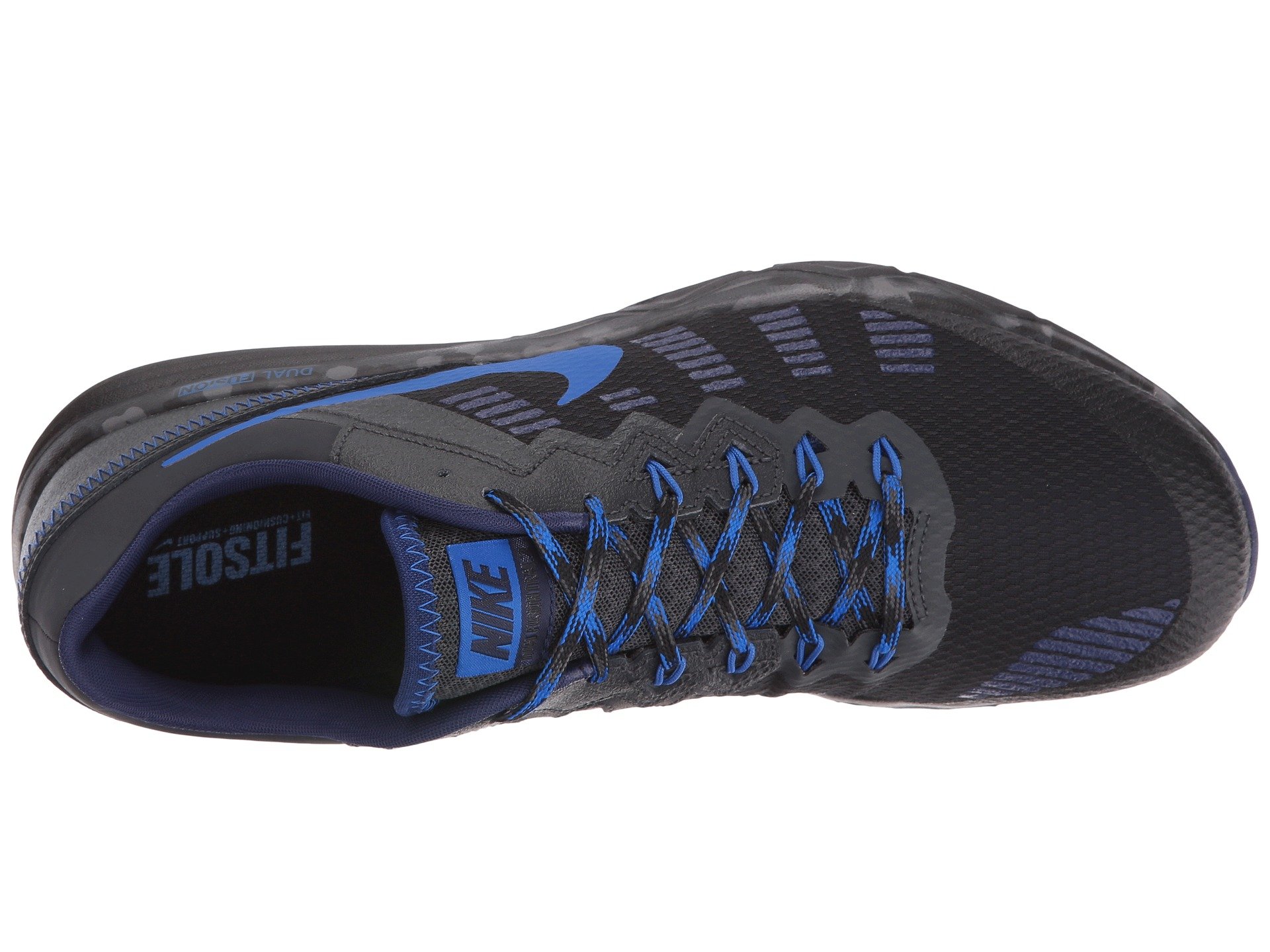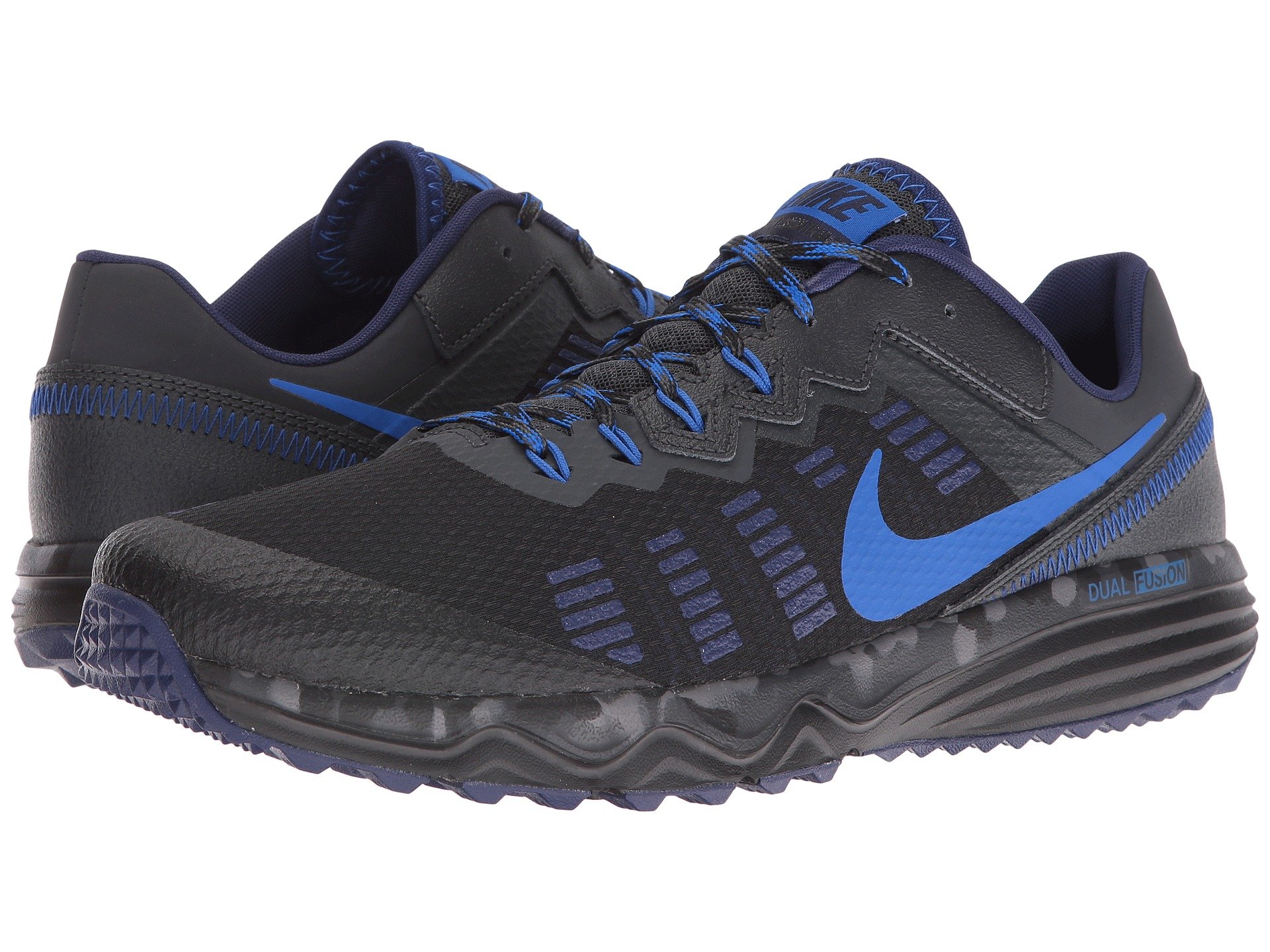 | Product Information SKU: #8635228Tear up the singletrack in the ruggedly built Nike? Dual Fusion Trail 2 trail-running shoe!Successor to the Dual Fusion Trail. Breathable mesh, textile, and synthetic upper materials.Flywire technology in the mid-foot helps lock the foot into place. Lace-up closure. Thin comfort tongue and lightly padded collar. Internal sleeve envelops the foot for a better fit and feel. Soft fabric lining offers a great in-shoe feel. Removable foam insole. Dual Fusion midsole features a combination of firm foam, EVA, and soft foam for lasting underfoot plush.Rubber outsole delivers traction over mixed terrain. Imported. Product measurements were taken using size 10, width D - Medium. Please note that measurements may vary by size.Weight of footwear is based on a single item, not a pair.Measurements: Weight: 11 oz |