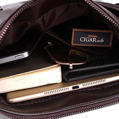 -. Feature : Material:high quality pu leather shoulder bag for men Color:Brown/Black /Khaki / Dimensions:23.5*28*7cm(9.25*11*2.7inch)can easy hold your 11inch iPad,The size is measured according to object,Please compare carefully with the model photo and size before buying / Adjustable nice shoulder straps (appr. 88-156cm,34.65-61.42inch) / Structure:A total of 5 pockets.2 zipper pockets outside.1 zipper pocket and 2 free pocket inside .1 main pocket.Large cavity for paperwork or can be used with insert for camera gear.Individual interior pockets for smartphone, misc items, pens.It is perfect for students, business professionals or travelers want to make a fashion statement and also a good birthday gift for your family / PU is polyurethane.Polyurethane leather has excellent performance. Due to the impact of animal protection associations, coupled with the development of technology, polyurethane synthetic leather performance and application is more than natural leather. After adding ultrafine fiber, the toughness and permeability of polyurethane, wear resistance has been further strengthened. There is no doubt that the finished product is quite excellent.