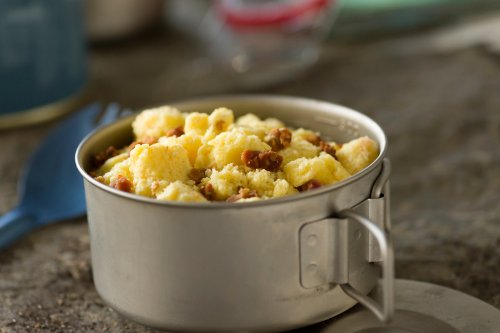 - Feature : The comforting taste and smell of crispy, bacon crumbles combined with scrambled eggs / Quick prep! Just add water to the pouch and you're good to go in less than 10 minutes, with no cleanup / One and a Half 3/4-Cup servings / Allergens: Milk, Egg / Gluten Free / 12+ year taste guarantee