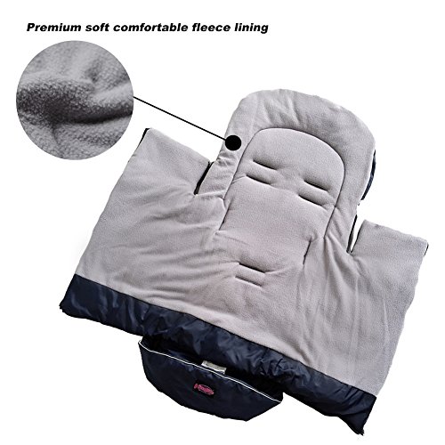 PRACTICAL DETAILS MAKES US BETTER THAN OUR COPETITORS: ①To keep the head warm while sleeping, the head area can be pulled into a hood or you can leave it open for more space. ②The little bag helps you for storage. ③The winter pack is machine washable at 40 degrees ④The dirt protection: in the foot area keeps the footmuff inside clean longer. And has bottom zipper to open and close for better temperature control and dirt cleaning. ⑤Darkness Safty Design : The bright reflective strip helps you to be safety and seen better in the dark. ⑥Age recommendation: approx. 6 to 36 months