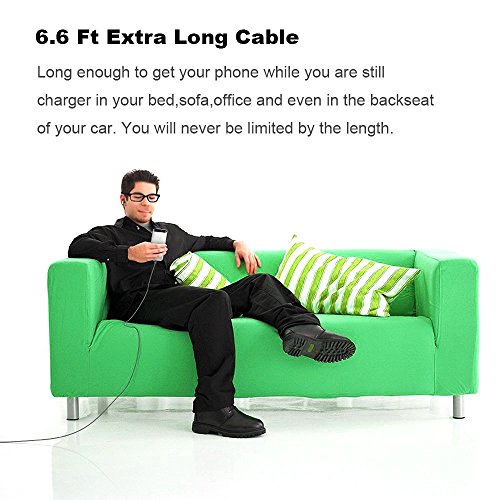• 6.6Ft long Cable, you can lie on the couch and use your devices while you are charging at the same time. And you can still use freely in in your bedroom, office and even in the backseat of your car. One year warranty and friendly easy-to-reach customer service available.