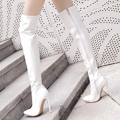 * Heel Height:12cm * Shaft: 54cm * Boots opening: 40cm * Platform Height: 0.5cm * Material: Patent Leather * Inner Material: Suede * Sole Material:Rubber * Color: Black, Red, White * Toe Type: Pointed Toe * Closure Type: Zipper * Heel Type: Stilettos * The package will be delivered to you about 7-12 business days. * Please measure the sizes of your feet before you buy this item. If your foot is slightly wider or one of your toes is longer than usual, please choose the larger size. * Q1: What can I do if I have any problems? * A1: Please send email to tell us your problems first,we will reply you in 12 hours(except holiday) and try to find the best solutions,thanks for your trust! * Q2: What can I do if the products have problems? * A2: Please send us email with the problem products picture,which can help us to solve the problem in time! * AIYOUMEI commits to the shoes' design, craftsmanship have a unique study to the Excellent quality of products and timely courtesy of customer service experience, adhering to the customer is God's philosophy.Our product main conclud boots, military style, espadrilles, flat, lace-ups, loafers panties, High heels, plateau, casuals, dress shoes, oxfords and so on.If there are any problems, please feel free to contact us at any time, we are always here to help you. 0 |