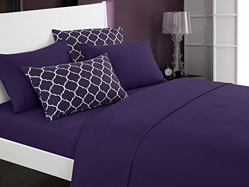Specifications: ? Size: Twin ? Color Scheme: Plum ? Piece Count: 6 ? Set Includes: ? 1pc Duvet Cover (66” x 86”) ? 1pc Sham (20” x 26” 2”) ? 1pc Solid Flat Sheet (66” x 96” 4") ? 1pc Solid Fitted Sheet (39” x 75” 8") ? 1pc Printed Pillowcase (21” x 27" 3") ? 1pc Solid Pillowcase (21” x 27" 3") ? Shipping Dimensions (approx.): L 15" x W 14" x H 6" ? Materials: Luxuriously brushed microfiber fabric