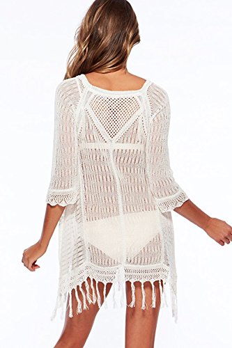 Feature : One size fits up to size( Medium 8-10):Sleeve 52 CM,Chest 94 CM,Length 70-90 CM / Providing more protection from the sunshine. / Stylish bikini cover-up with an openwork crochet and tassel design. / Unique style,making you more beautiful,fashionable,sexy and elegant.