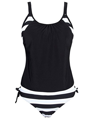-. Title : Eternatastic Women's Stripes Lined Up Double Up Tankini Swimwear Swimsuit