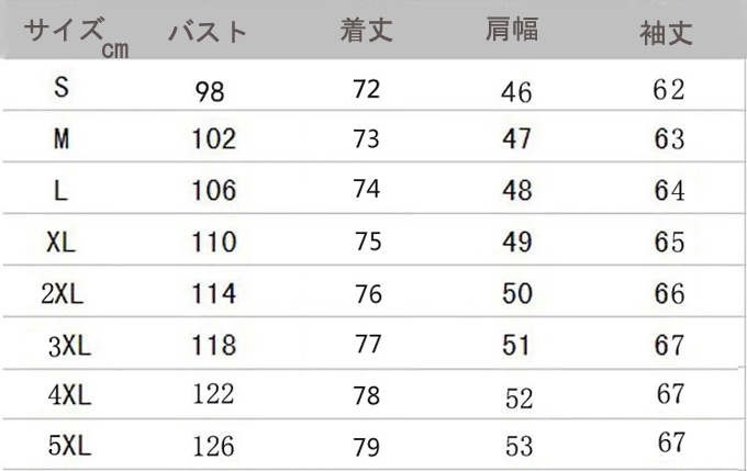 ■サイズ(cm):S-5XLページのサイズ表をご確認ください