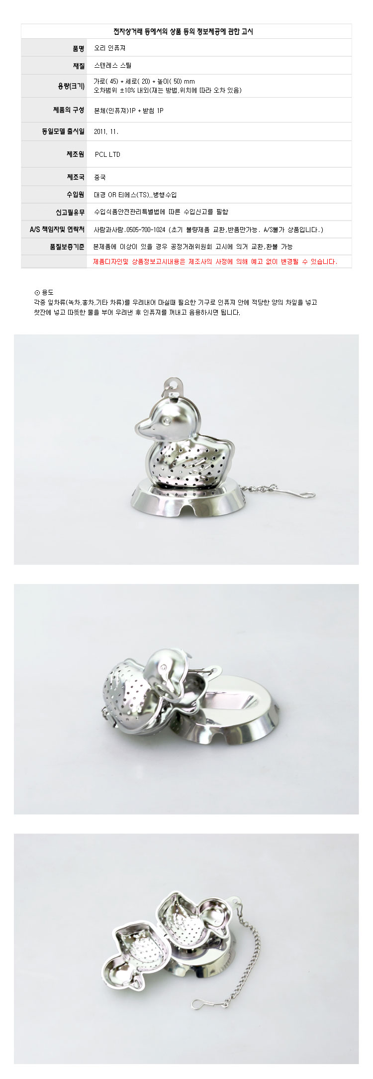 Duck-shaped inpyujyeo tea sieve Tea infusion